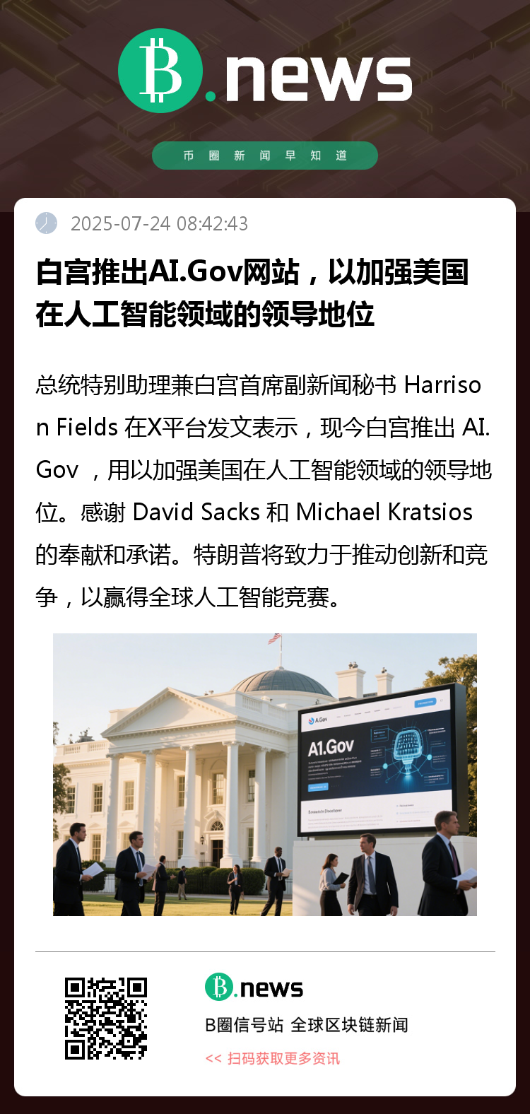 白宫推出 AI.Gov ,以加强美国在人工智能领域的领导地位。