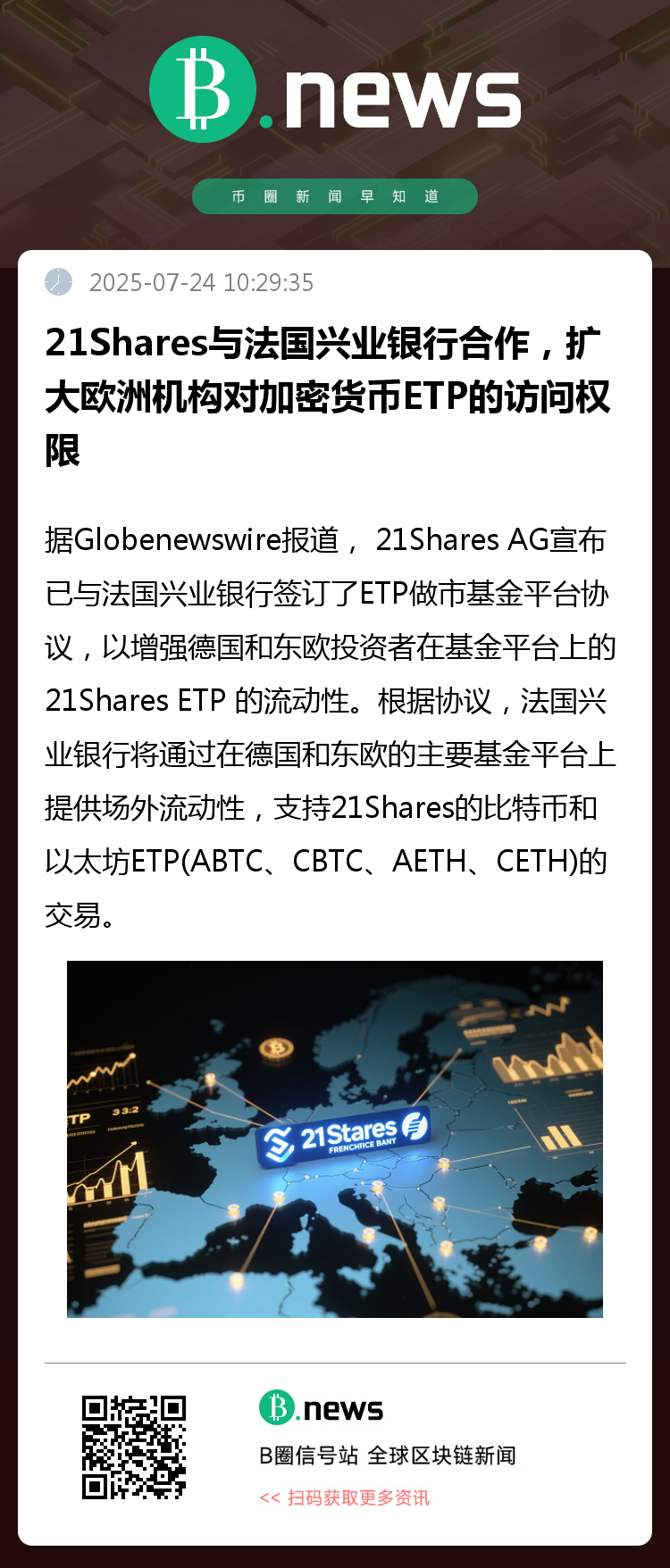 通过此次合作,21Shares的旗舰加密货币产品将可供更广泛的专业投资者使用,从而扩大其在德国和东欧的机构覆盖范围。