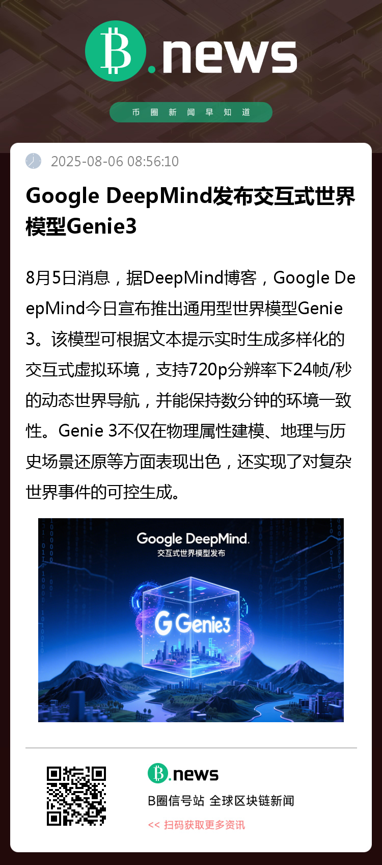 8月5日消息,据DeepMind博客,Google DeepMind今日宣布推出通用型世界模型Genie 3。