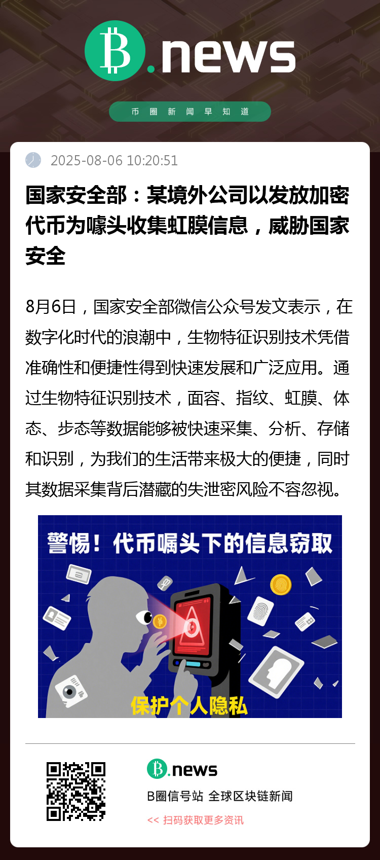 有公开案例显示,某境外公司以发放加密货币代币为噱头,在世界范围内扫描收集用户虹膜信息,并将数据源转移,给个人信息安全甚至国家安全带来威胁。