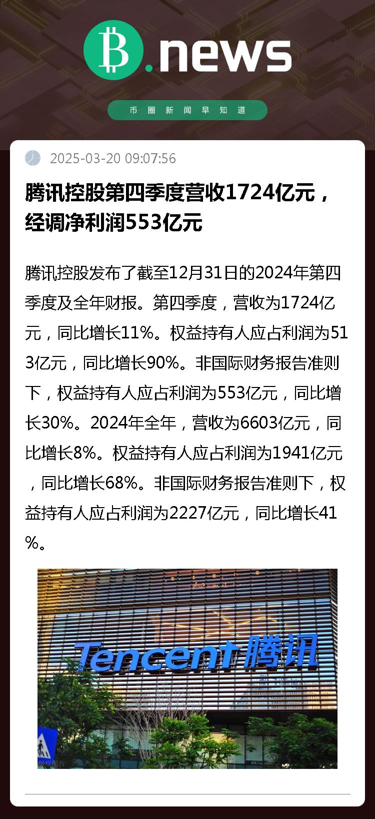 腾讯控股发布了截至12月31日的2024年第四季度及全年财报。