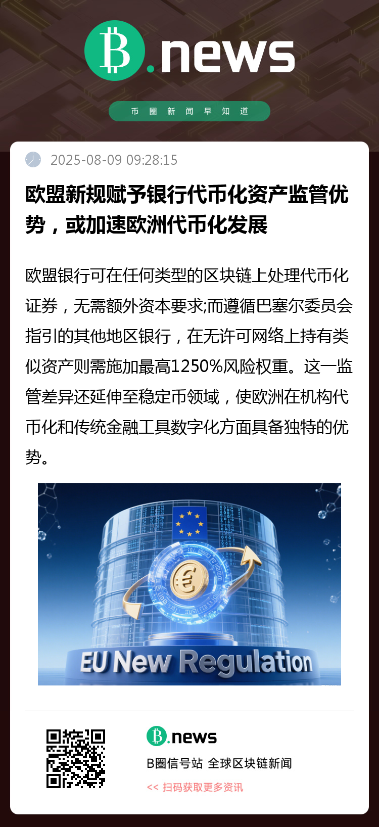 欧盟去年通过的立法为银行代币化传统资产创造了显著监管优势,使其处理方式比全球多数地区更为宽松。本周,欧洲银行管理局(EBA)发布最终技术标准,大体遵循巴塞尔银行监管委员会(BCBS)指引并主要适用于加密货币,但欧盟立法推翻了在代币化传统资产上的保守做法,明确将其与传统资产同等对待,无任何附加条件。