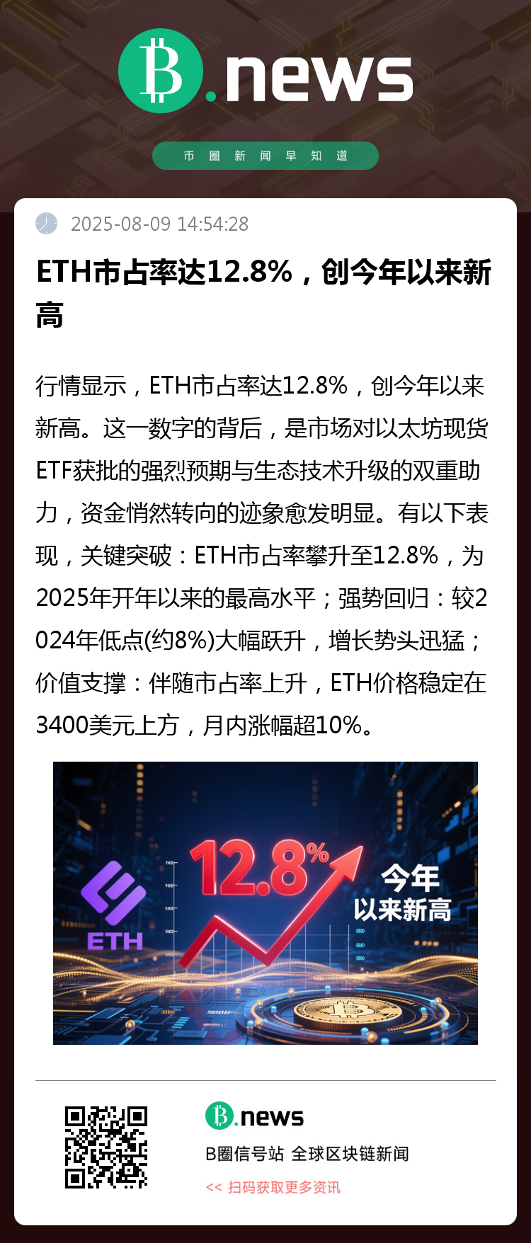 关键突破:ETH市占率攀升至12.8%,为2025年开年以来的最高水平