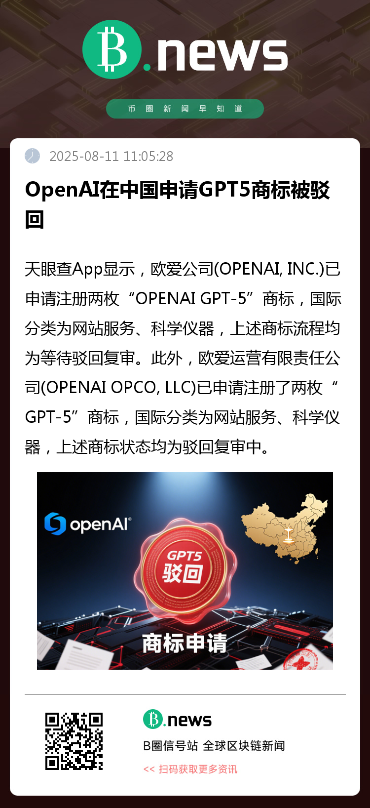 值得一提的是,深圳某科技公司曾申请注册两枚“GPT-5”商标,不过,上述商标均已被驳回,为无效状态。