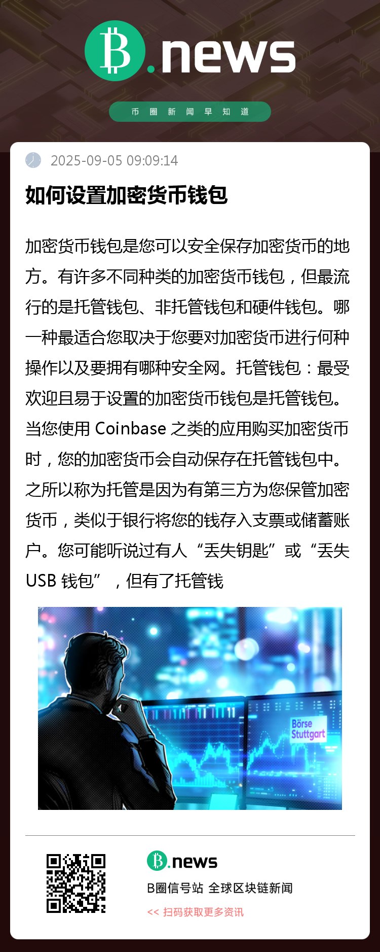 最受欢迎且易于设置的加密货币钱包是托管钱包。当您使用 Coinbase 之类的应用购买加密货币时,您的加密货币会自动保存在托管钱包中。之所以称为托管是因为有第三方为您保管加密货币,类似于银行将您的钱存入支票或储蓄账户。您可能听说过有人“丢失钥匙”或“丢失 USB 钱包”,但有了托管钱包,则无需担心任何这类事情。