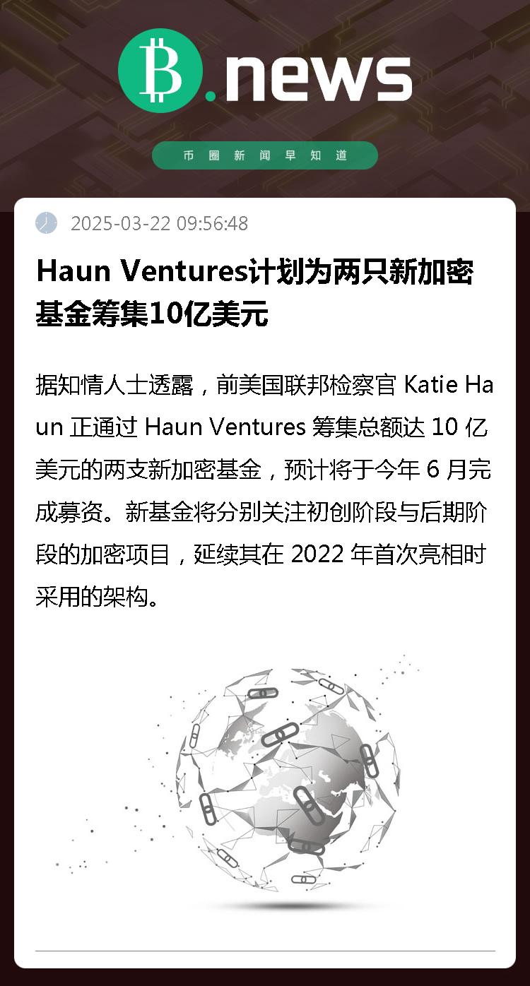 据知情人士透露,前美国联邦检察官 Katie Haun 正通过 Haun Ventures 筹集总额达 10 亿美元的两支新加密基金,预计将于今年 6 月完成募资。