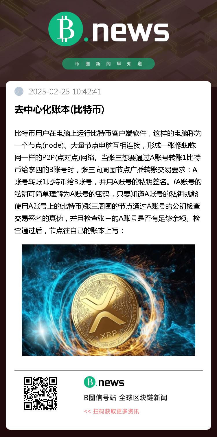 节点把这个交易广播给周围的节点,一传十十传百,直到所有节点都收到这笔交易。比特币的去中心化公开账本称为区块链。这是比特币运行的一个最简化描述,当然比特币的实际运行远比这复杂,我们在后续会对其进行进一步讲解。