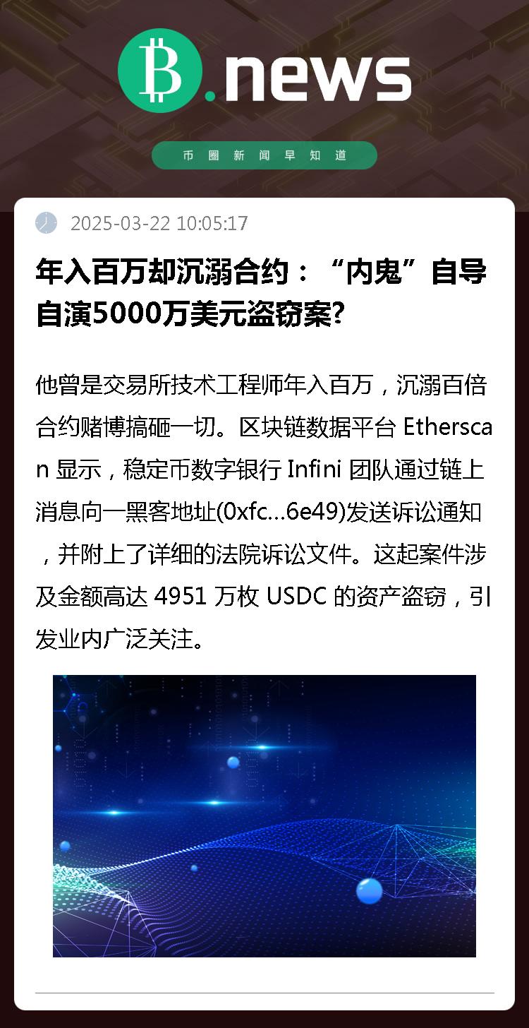 区块链数据平台 Etherscan 显示,稳定币数字银行 Infini 团队通过链上消息向一黑客地址(0xfc…6e49)发送诉讼通知,并附上了详细的法院诉讼文件。这起案件涉及金额高达 4951 万枚 USDC 的资产盗窃,引发业内广泛关注。