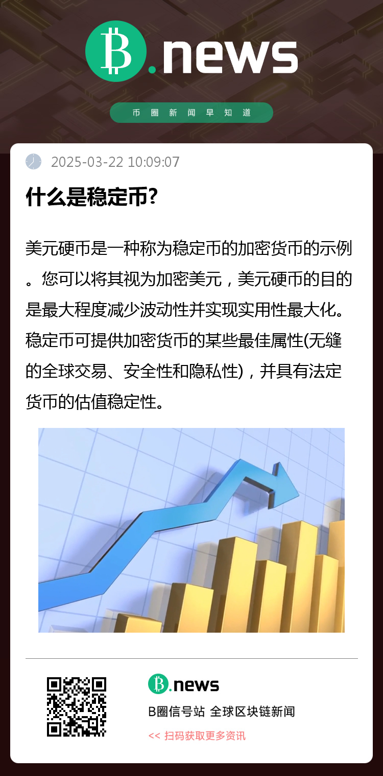 美元硬币是一种称为稳定币的加密货币的示例。您可以将其视为加密美元,美元硬币的目的是最大程度减少波动性并实现实用性最大化。稳定币可提供加密货币的某些最佳属性(无缝的全球交易、安全性和隐私性),并具有法定货币的估值稳定性。
