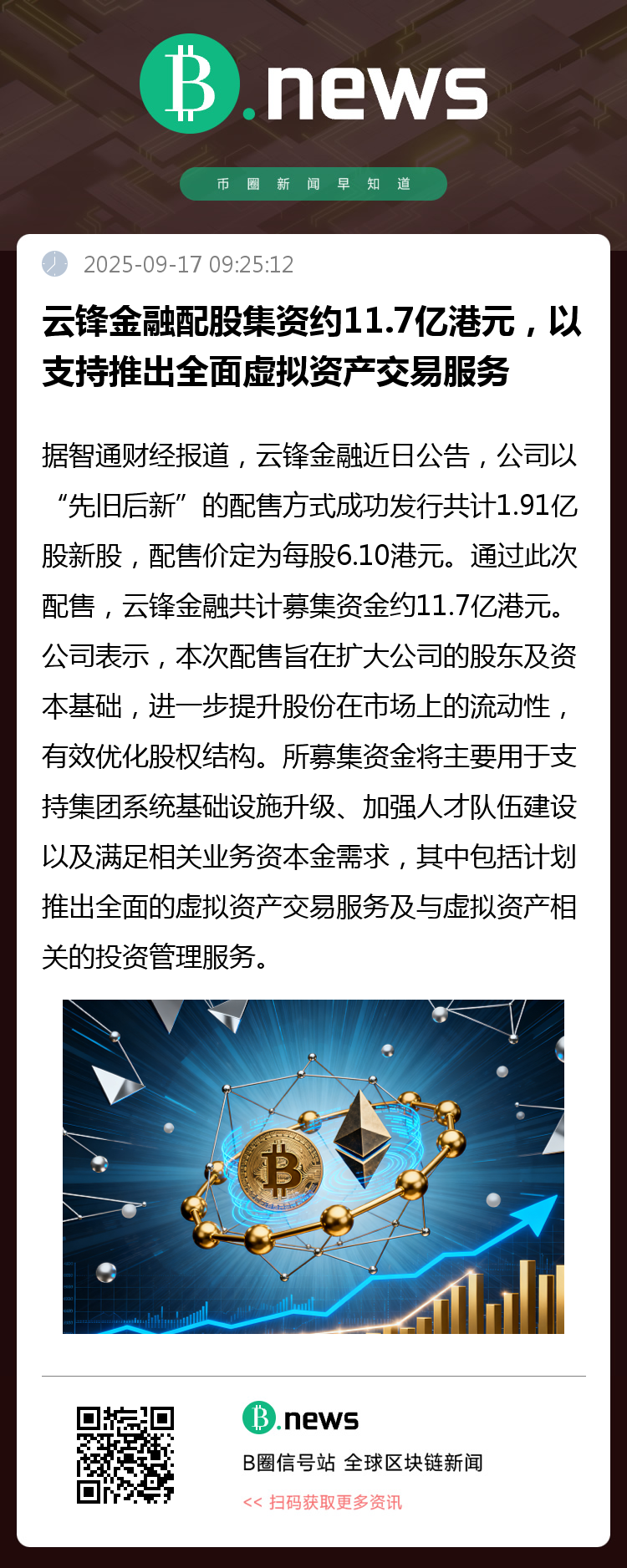 公司表示,本次配售旨在扩大公司的股东及资本基础,进一步提升股份在市场上的流动性,有效优化股权结构。所募集资金将主要用于支持集团系统基础设施升级、加强人才队伍建设以及满足相关业务资本金需求,其中包括计划推出全面的虚拟资产交易服务及与虚拟资产相关的投资管理服务。