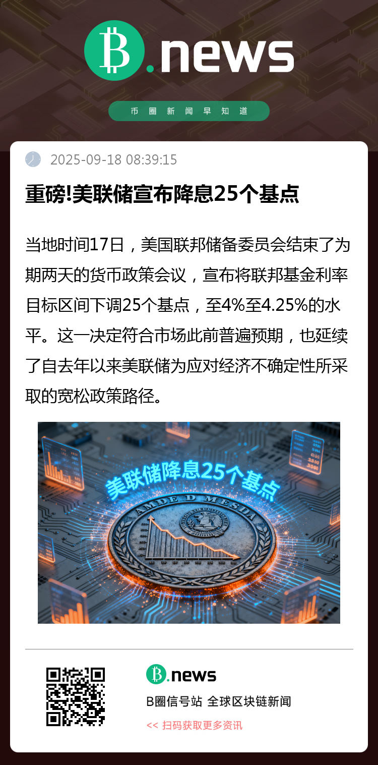 当地时间17日,美国联邦储备委员会结束了为期两天的货币政策会议,宣布将联邦基金利率目标区间下调25个基点,至4%至4.25%的水平。这一决定符合市场此前普遍预期,也延续了自去年以来美联储为应对经济不确定性所采取的宽松政策路径。