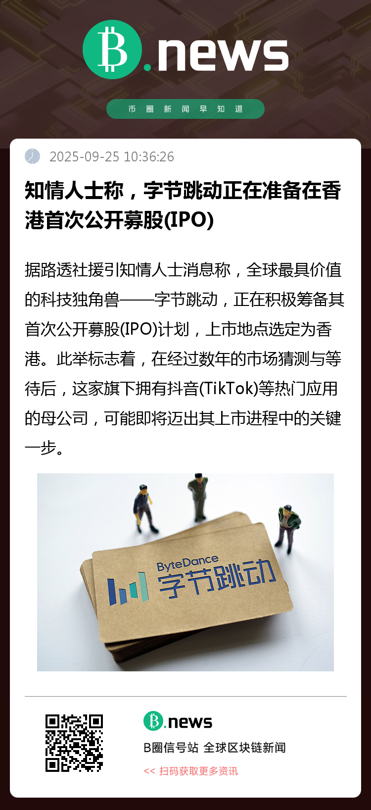 据路透社援引知情人士消息称,全球最具价值的科技独角兽——字节跳动,正在积极筹备其首次公开募股(IPO)计划,上市地点选定为香港。此举标志着,在经过数年的市场猜测与等待后,这家旗下拥有抖音(TikTok)等热门应用的母公司,可能即将迈出其上市进程中的关键一步。