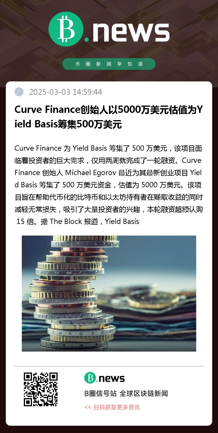 Curve Finance 创始人 Michael Egorov 最近为其最新创业项目 Yield Basis 筹集了 500 万美元资金,估值为 5000 万美元。该项目旨在帮助代币化的比特币和以太坊持有者在赚取收益的同时减轻无常损失,吸引了大量投资者的兴趣,本轮融资超额认购 15 倍。