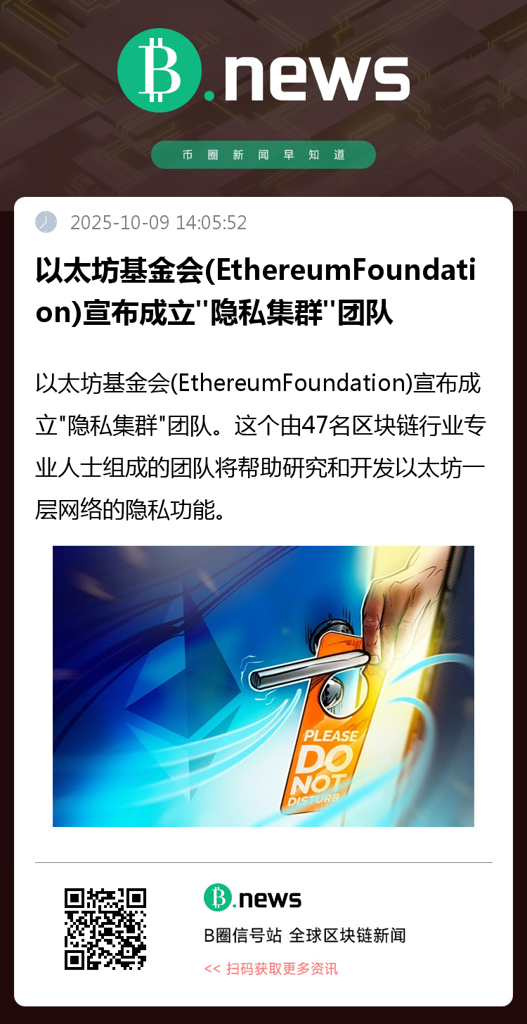 负责监督以太坊网络开发的以太坊基金会宣布成立"隐私集群",这是一个由47名区块链行业专家组成的团队,负责为一层智能合约网络带来隐私功能。