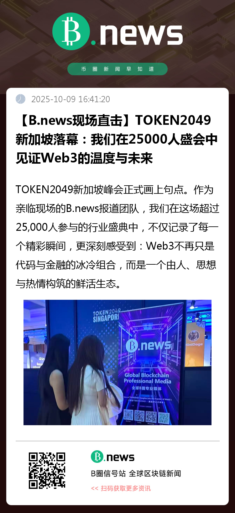 通过对本次盛会的全程跟踪报道,B.news认为TOKEN20492025新加坡的意义远超一次普通行业聚会: