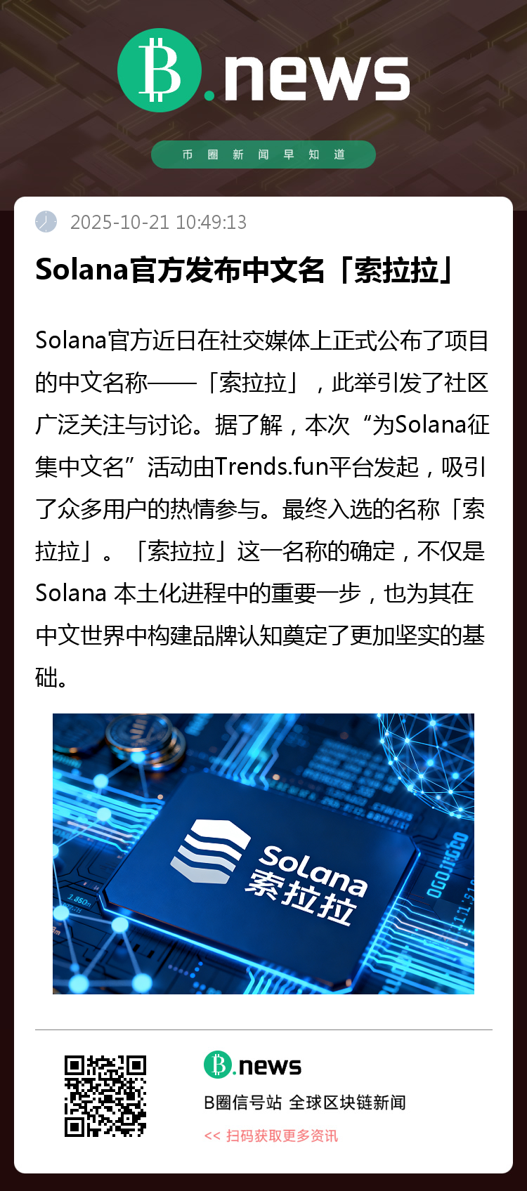 Solana 官方近日在社交媒体上正式公布了项目的中文名称——「索拉拉」,此举引发了社区广泛关注与讨论。