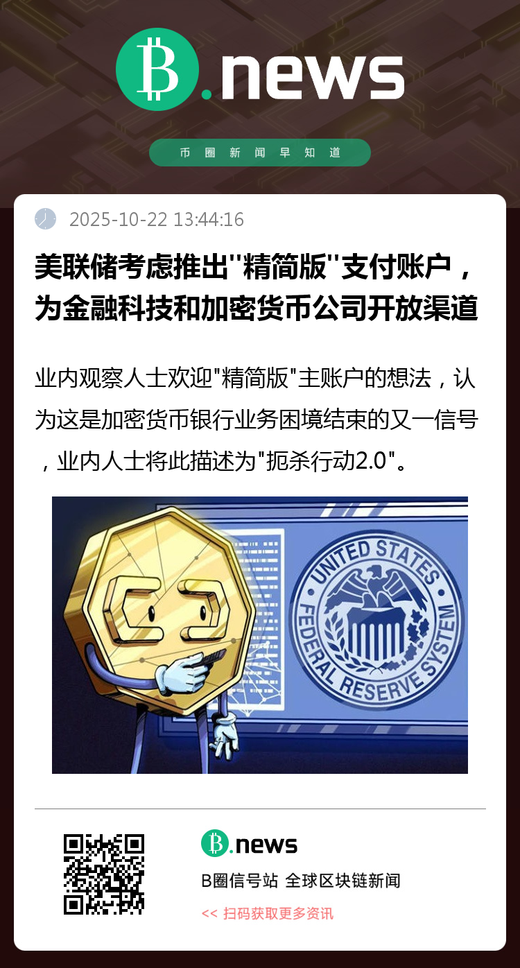 美国联邦储备委员会(Fed)正在考虑推出一种新型支付账户,这将使小型公司更容易参与中央银行的支付系统,标志着加密货币行业银行业务准入挑战的终结。