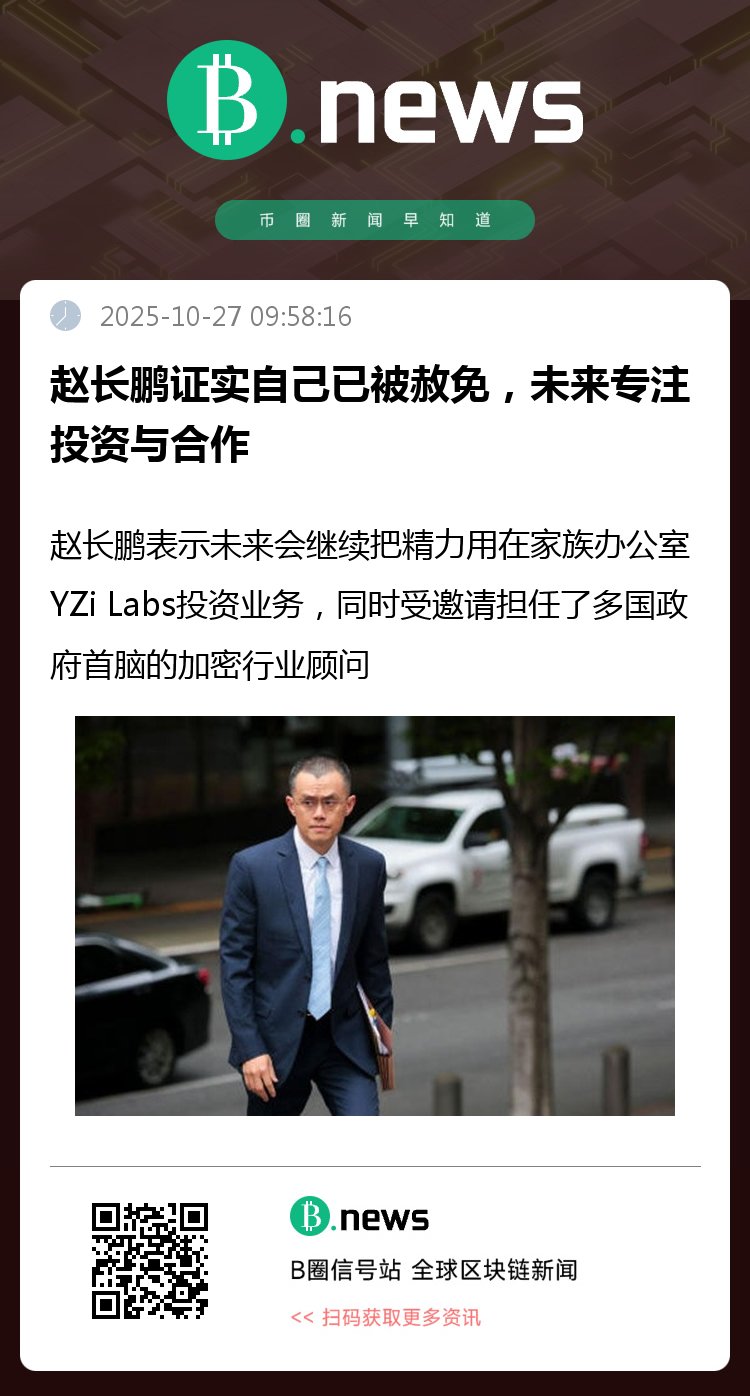 赵长鹏证实自己已被赦免,未来专注投资与合作