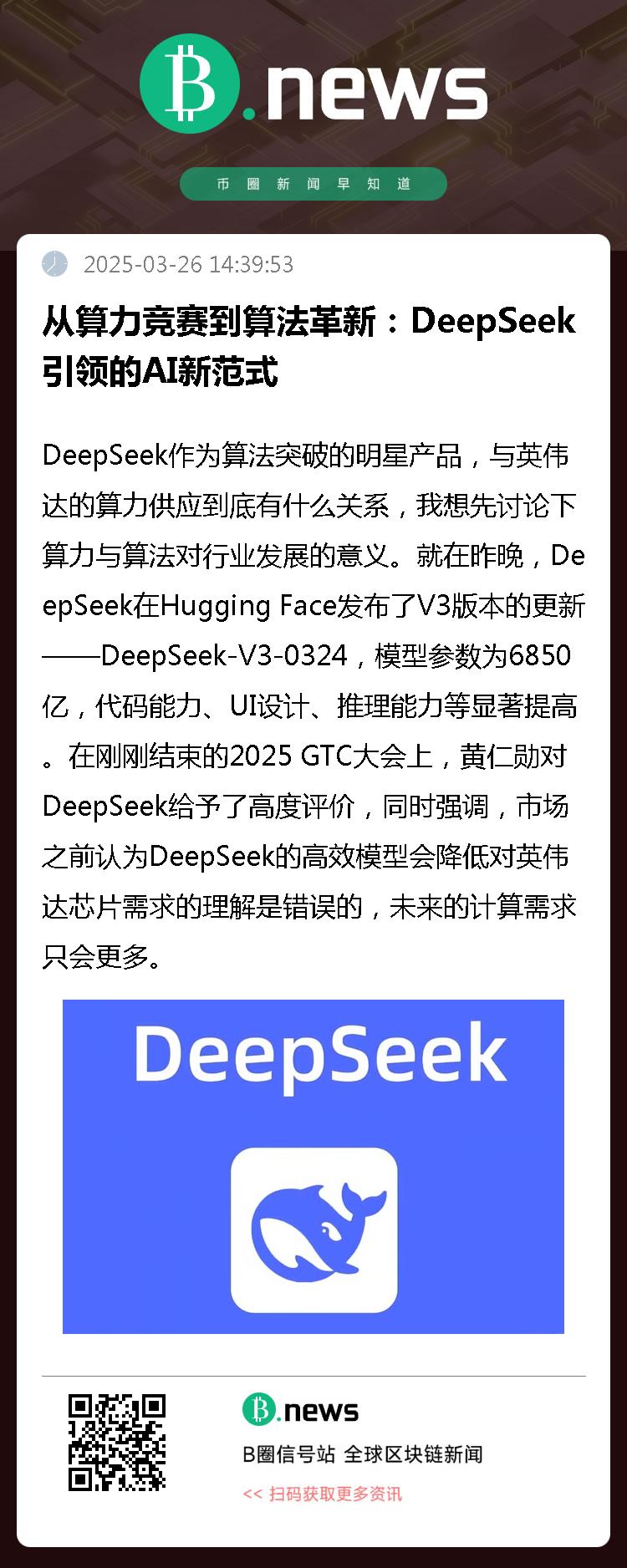"我们只能看到很短的未来,但足以发现那里有很多工作要做。"DeepSeek正是在算力约束下,通过算法创新寻找突破,为中国AI产业开辟了差异化发展路径。 降低应用门槛、推动Web3与AI融合、减轻对高端芯片依赖、赋能金融创新,这些影响正在重塑数字经济格局。未来AI发展不再仅是算力竞赛,而是算力与算法协同优化的竞赛。在这条新赛道上,DeepSeek等创新者正在用中国智慧重新定义游戏规则。