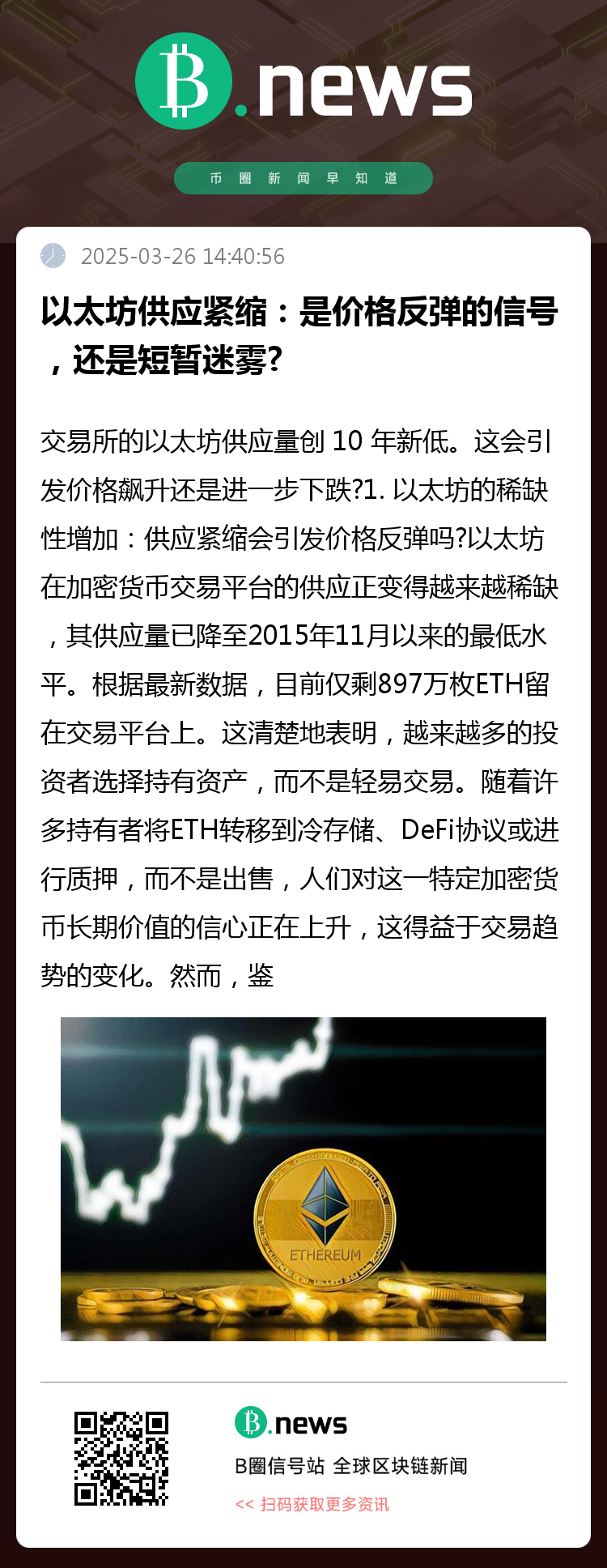 1. 以太坊的稀缺性增加:供应紧缩会引发价格反弹吗?