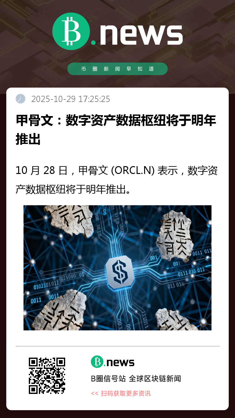 10 月 28 日,甲骨文 (ORCL.N) 表示,数字资产数据枢纽将于明年推出。