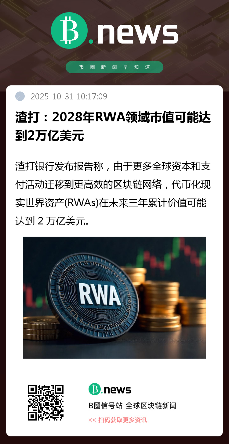 渣打银行在最新研究报告中指出,随着更多全球资本与支付活动向效率更高的区块链网络迁移,现实世界资产(RWA)的代币化市场规模有望在未来三年内累计达到2万亿美元。