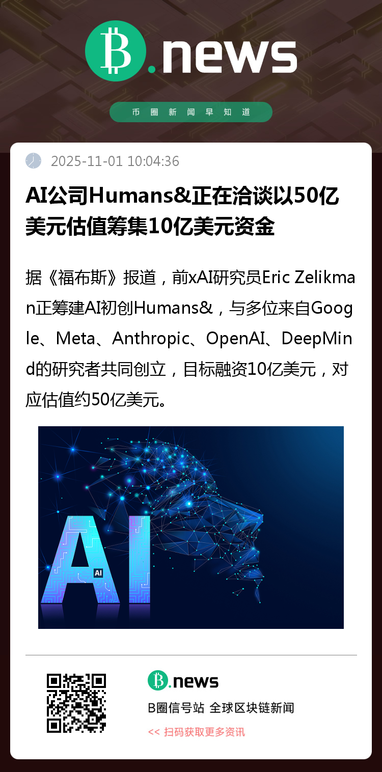 据《福布斯》最新披露,前xAI研究员Eric Zelikman正牵头组建一家人工智能初创企业Humans&,并已汇聚多位来自Google、Meta、Anthropic、OpenAI及DeepMind等顶尖机构的资深研究者。该公司计划以约50亿美元估值进行高达10亿美元的融资,显示出市场对其技术愿景与发展潜力的高度认可。