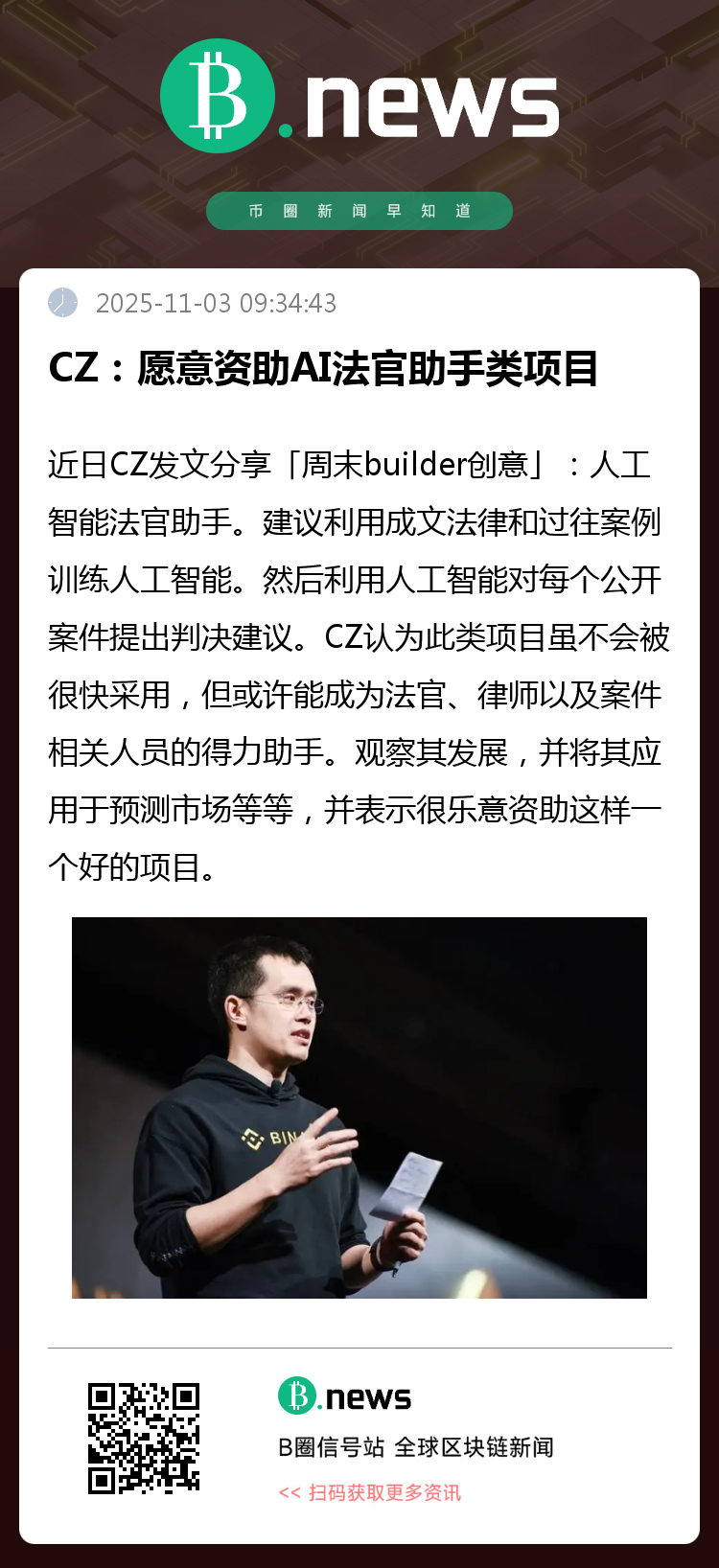 CZ在最新分享中提出了一个颇具前瞻性的“周末builder创意”——人工智能法官助手。他建议,可以基于现有的成文法体系与大量历史判例数据,对人工智能进行定向训练,进而使其能够对公开审理的案件自动生成判决建议。