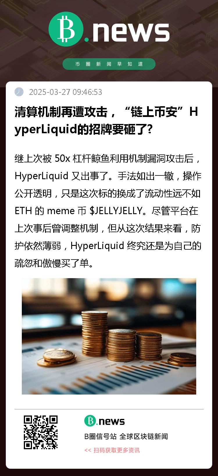 尽管平台在上次事后曾调整机制,但从这次结果来看,防护依然薄弱,HyperLiquid 终究还是为自己的疏忽和傲慢买了单。