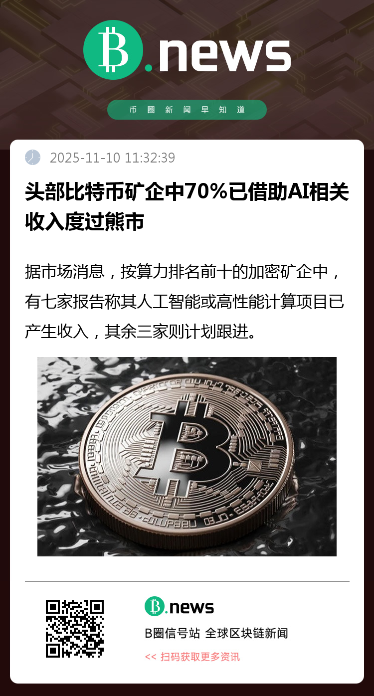 据市场消息,按算力排名前十的加密矿企中,有七家报告称其人工智能或高性能计算项目已产生收入,其余三家则计划跟进。
