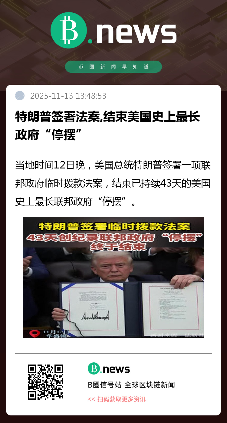 当地时间12日晚,美国总统特朗普签署一项联邦政府临时拨款法案,结束已持续43天的美国史上最长联邦政府“停摆”。大约两小时前,美国国会众议院以222票支持、209票反对的结果正式通过这项法案。该法案已于10日在参议院获得通过。