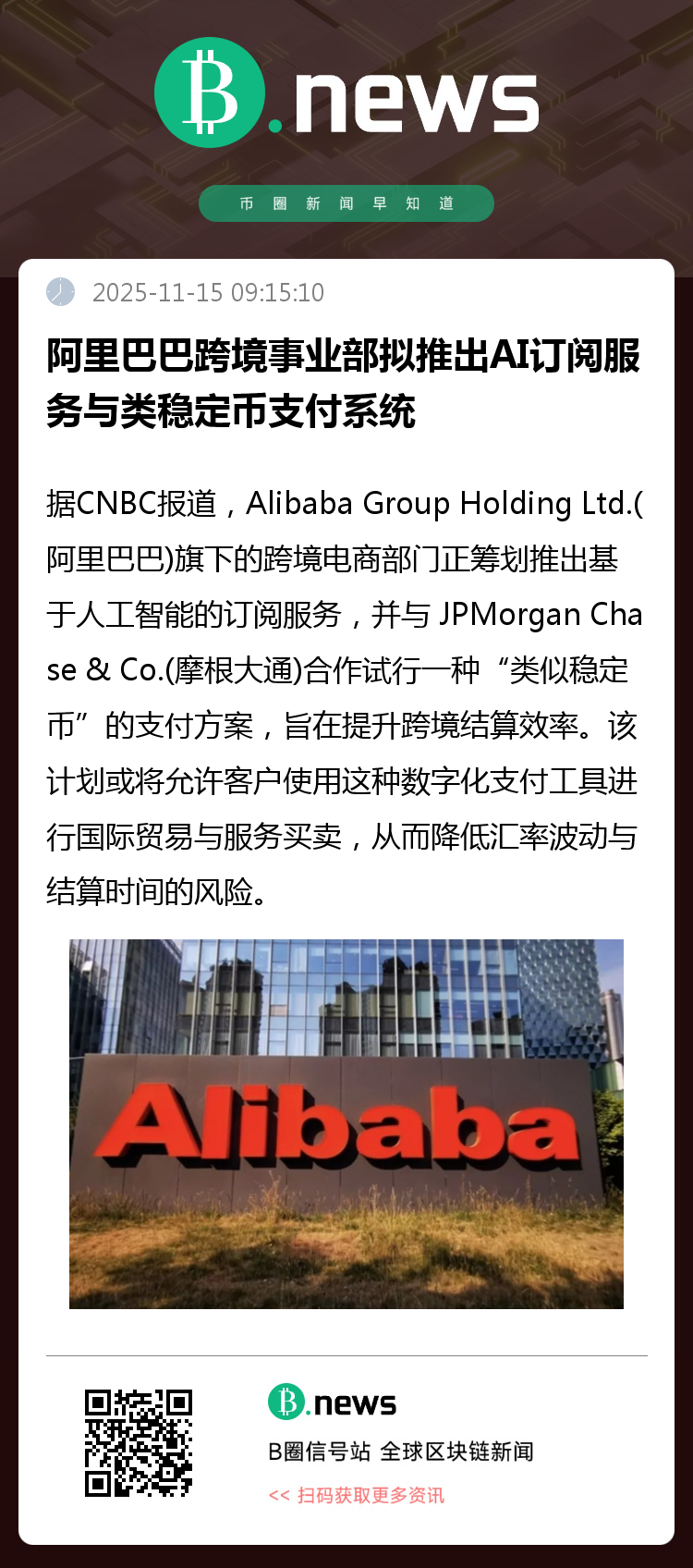 据美国消费者新闻与商业频道(CNBC)报道,阿里巴巴集团控股有限公司旗下跨境电商业务部门正积极布局人工智能领域,计划推出一项基于AI技术的订阅服务。与此同时,该部门已与摩根大通达成合作,共同试点一项“类稳定币”支付解决方案,目标在于优化全球贸易中的跨境结算流程。