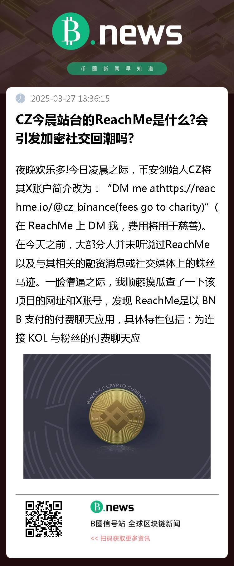追根溯源,ReachMe起源于CZ在3月8日上币安广场发布的一篇名为“Pay to Reach”的文章,该文章的重点如下: