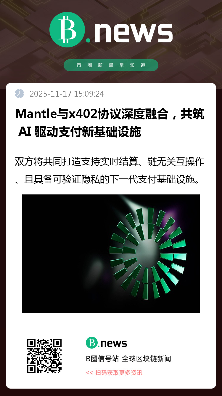通过将 x402 的原生支付协议与 Mantle 的高性能模块化 Layer2 架构相结合,双方将共同打造支持实时结算、链无关互操作、且具备可验证隐私的下一代支付基础设施。