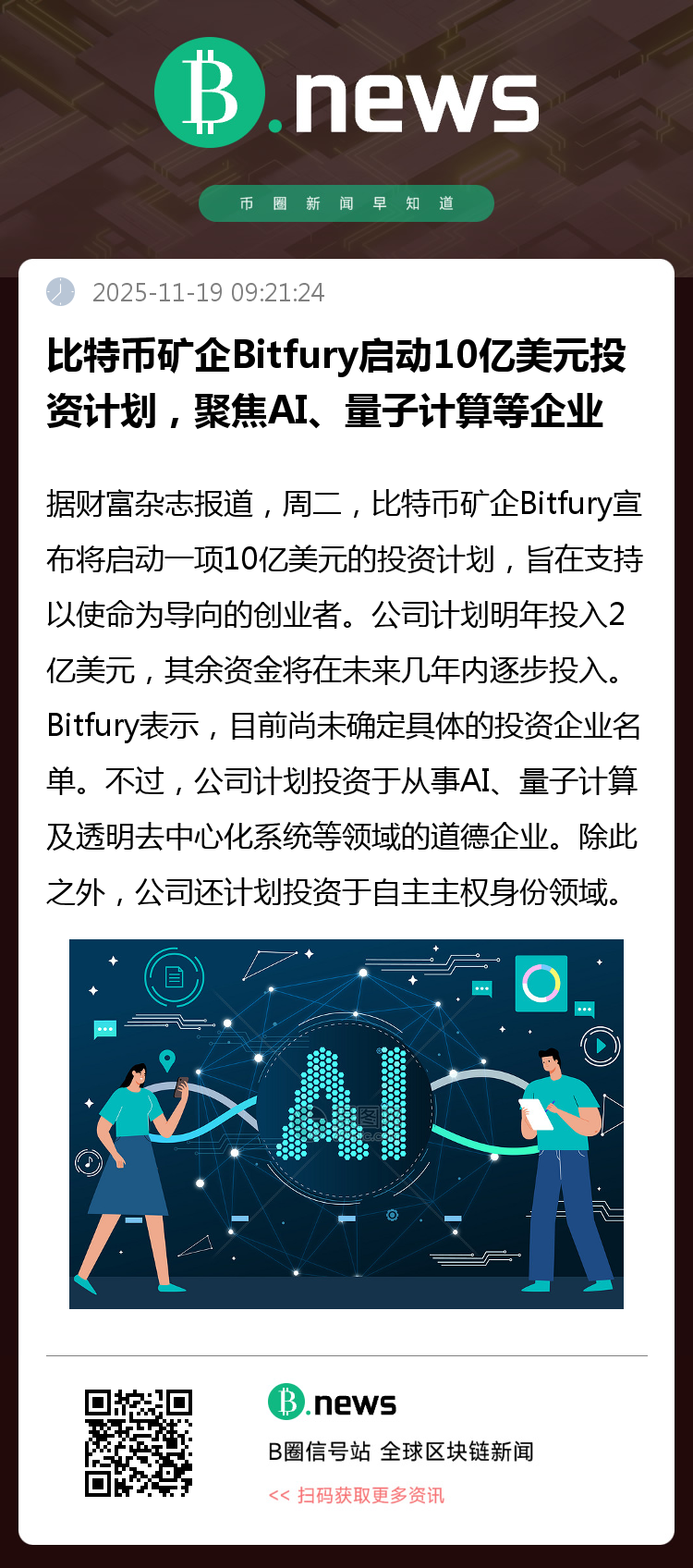 据《财富》杂志最新报道,比特币矿业巨头 Bitfury 于本周二宣布,将正式启动一项规模高达 10 亿美元的使命驱动型投资计划,致力于在全球范围内发掘并支持以社会责任与技术创新为核心目标的创业者。根据规划,Bitfury 将于明年率先投入 2 亿美元作为启动资金,其余部分将在未来数年中分阶段逐步部署。