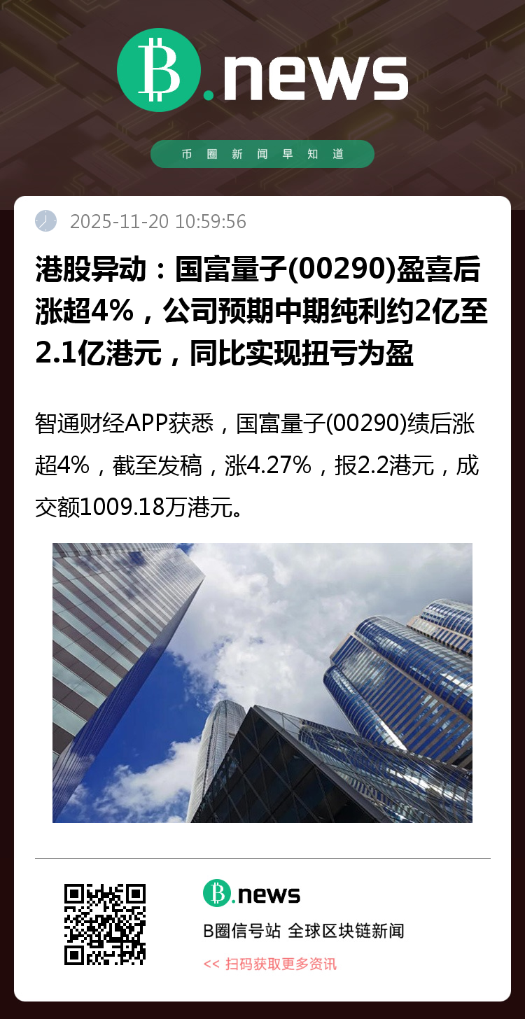 消息面上,国富量子发公告,预期集团于截至9月底的6个月期间将取得公司拥有人应占净溢利约2亿港元至2.1亿港元,而2024年同期则取得公司拥有人应占净亏损约1090万港元。公告称,本期间溢利增加主要由于于本期间确认按公平值列入损益账的投资收益净额;出售加密货币的收益;及集团主营业务(其中包括集团的证券经纪及孖展融资业务)产生的经营溢利增加。