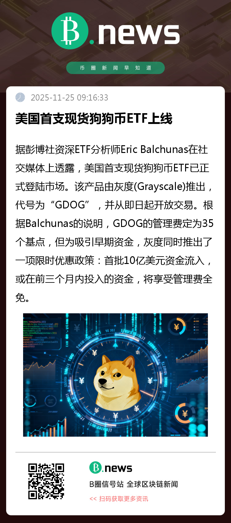 这一动向并非孤立。回顾比特币现货ETF的获批历程(如贝莱德IBIT上线及初期资金流入表现),能看出监管与市场的博弈逐渐转向成熟。彭博分析师Eric Balchunas多次强调ETF的资金流入数据(如首日40亿美元预测、年内净流入170亿美元),实际上揭示了这类产品在提供合规敞口、降低散户直接持有风险方面的核心价值。而管理费策略(如GDOG首批10亿美元免收费)则是发行方在激烈竞争中抢占市场份额的典型手段。