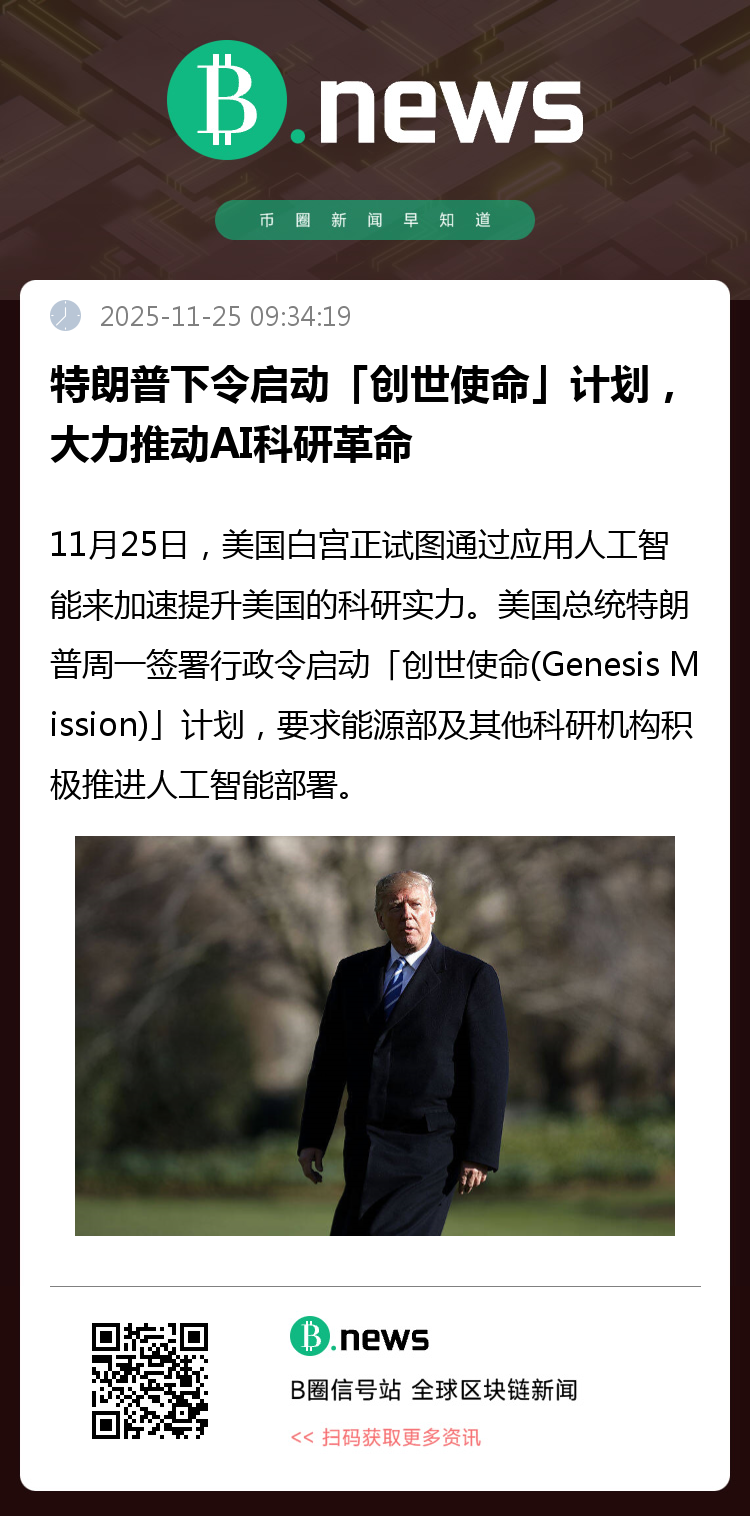 11月25日,美国白宫宣布推出一项名为“创世使命(Genesis Mission)”的重大科研计划,旨在通过广泛部署人工智能技术,全面加速美国的科学研究与技术发展进程。美国总统特朗普于本周一正式签署了相关行政命令,要求能源部及其他联邦科研机构协同推进人工智能在科研领域的深度整合与应用。