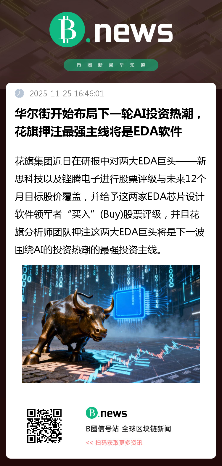 花旗集团近日在研报中对两大EDA巨头——新思科技以及铿腾电子进行股票评级与未来12个月目标股价覆盖,并给予这两家EDA芯片设计软件领军者“买入”(Buy)股票评级,并且花旗分析师团队押注这两大EDA巨头将是下一波围绕AI的投资热潮的最强投资主线。花旗看好这两大EDA软件巨头的主要逻辑在于,史无前例的全球AI浪潮之下芯片公司对于电子设计自动化软件生态在人工智能芯片领域中日益突出的作用,并且随着EDA软件生态中的先进AI辅助工具采用与渗透率日益扩大,芯片设计大客户们普遍反映设计周期更快且效率比以往高得多。