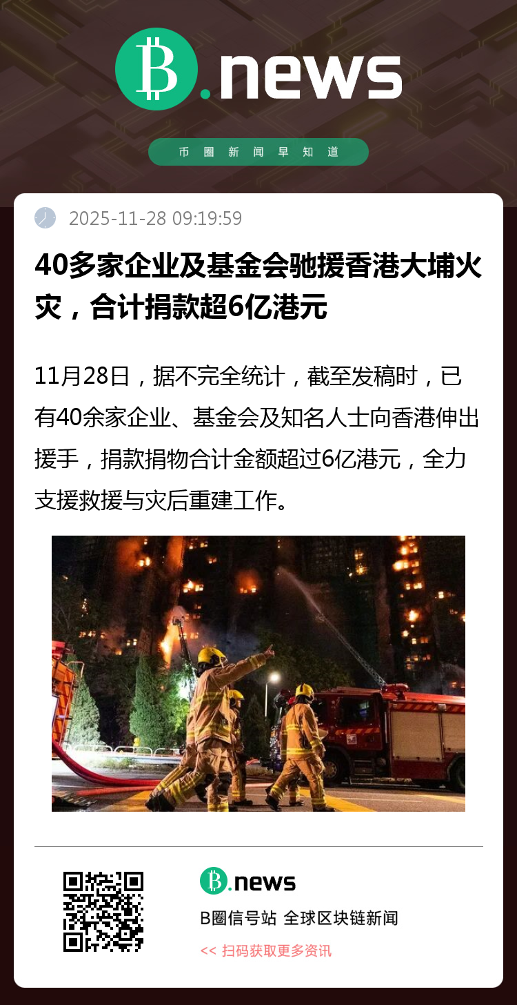 11月28日,据不完全统计,截至发稿时,已有40余家企业、基金会及知名人士向香港伸出援手,捐款捐物合计金额超过6亿港元,全力支援救援与灾后重建工作。