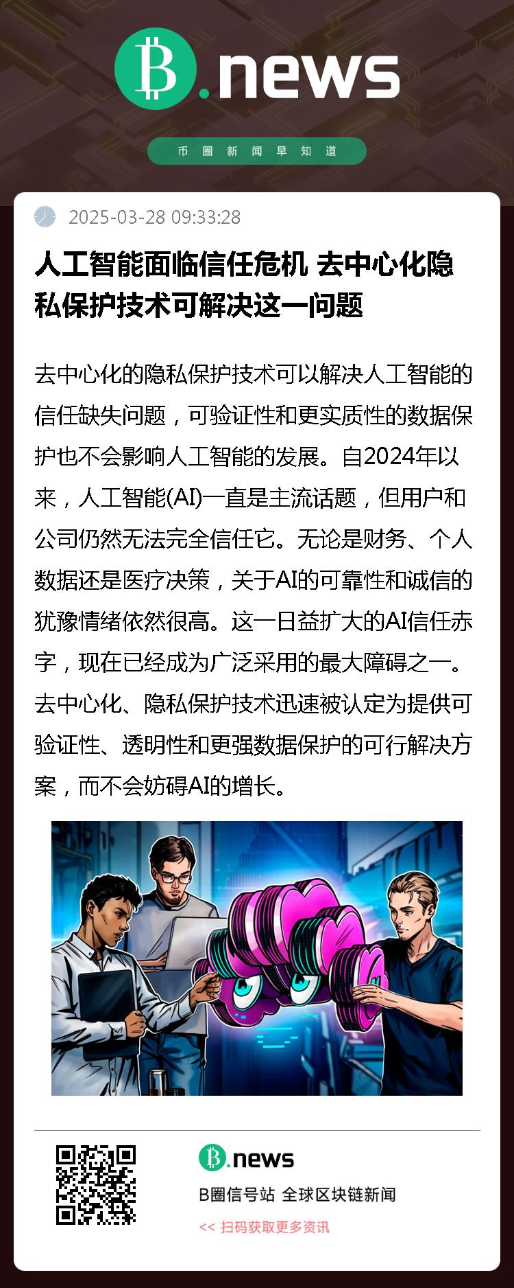 去中心化的隐私保护技术可以解决人工智能的信任缺失问题,可验证性和更实质性的数据保护也不会影响人工智能的发展。