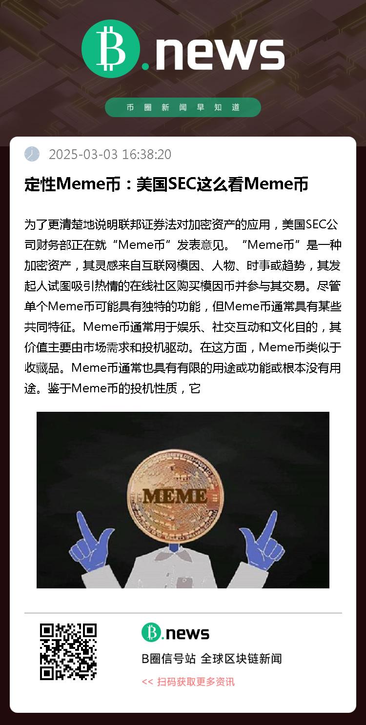 为了更清楚地说明联邦证券法对加密资产的应用,美国SEC公司财务部正在就“Meme币”发表意见。