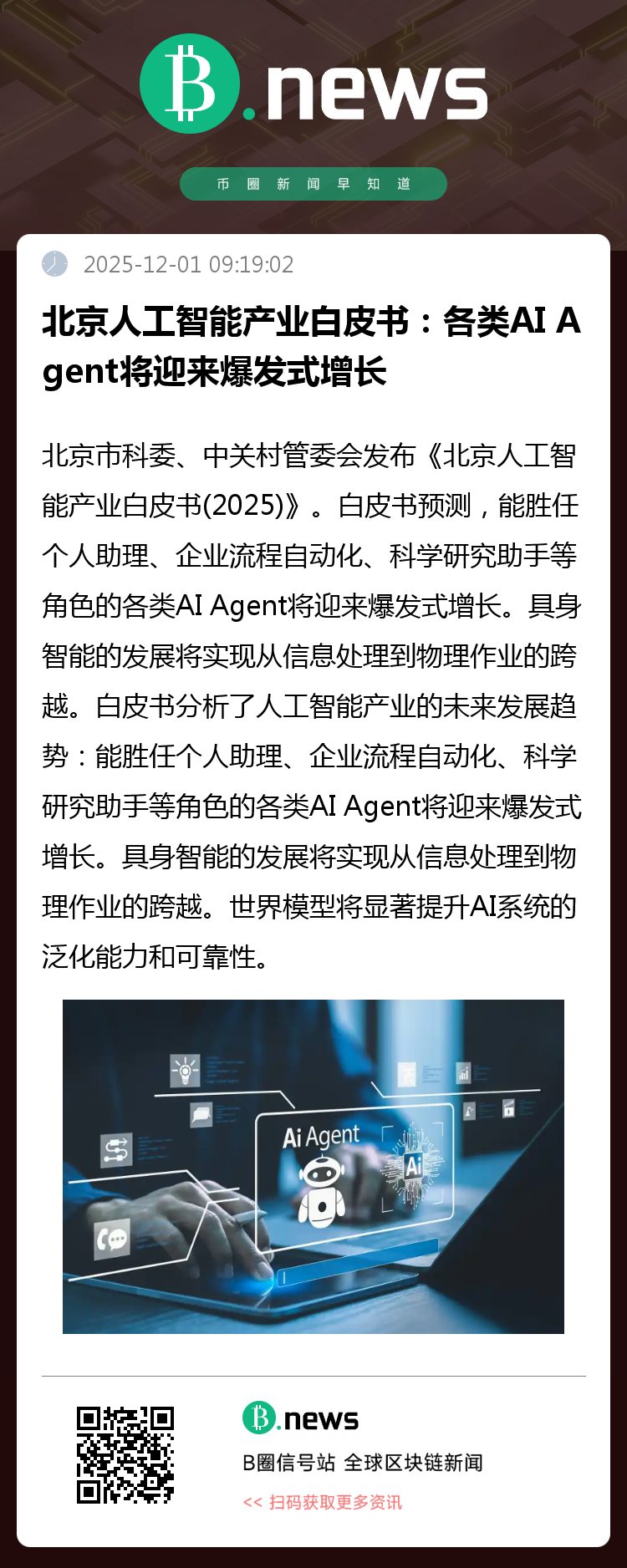 白皮书指出,作为人工智能应用形态的重要演进方向,能够胜任个人助理、企业流程自动化、科研辅助等多样化任务的AI Agent(人工智能代理)将迎来爆发式增长。这类系统具备更高的自主性与场景适应性,有望在办公、生活与科研等多个层面实现深度融合,显著提升社会运行效率。