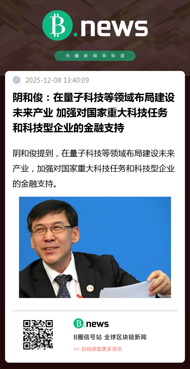 阴和俊:在量子科技等领域布局建设未来产业 加强对国家重大科技任务和科技型企业的金融支持