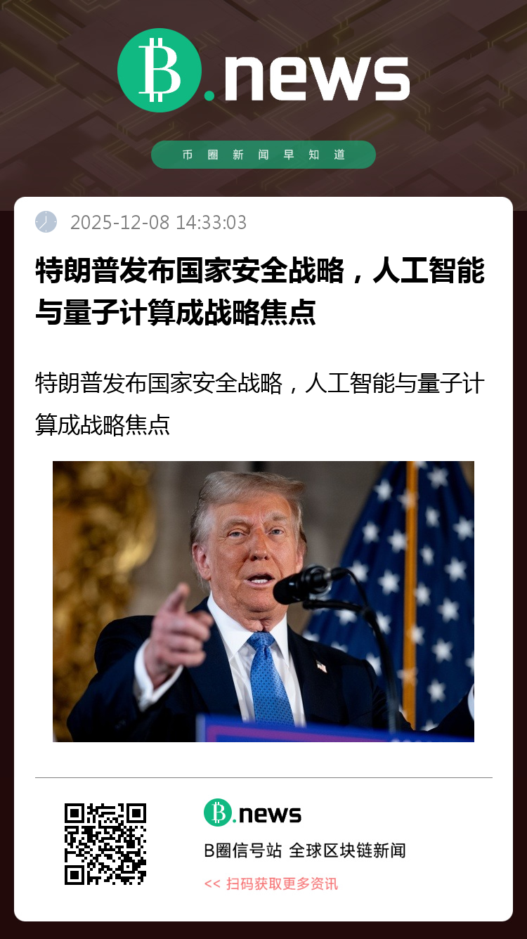 12 月 8 日,特朗普于周五发布的国家安全战略概述了他的政府优先事项,其中指出,美国的「核心、至关重要的国家利益」围绕着人工智能和量子计算展开。「我们希望确保美国的技术和标准——尤其是在人工智能、生物技术和量子计算领域——推动世界向前发展。」