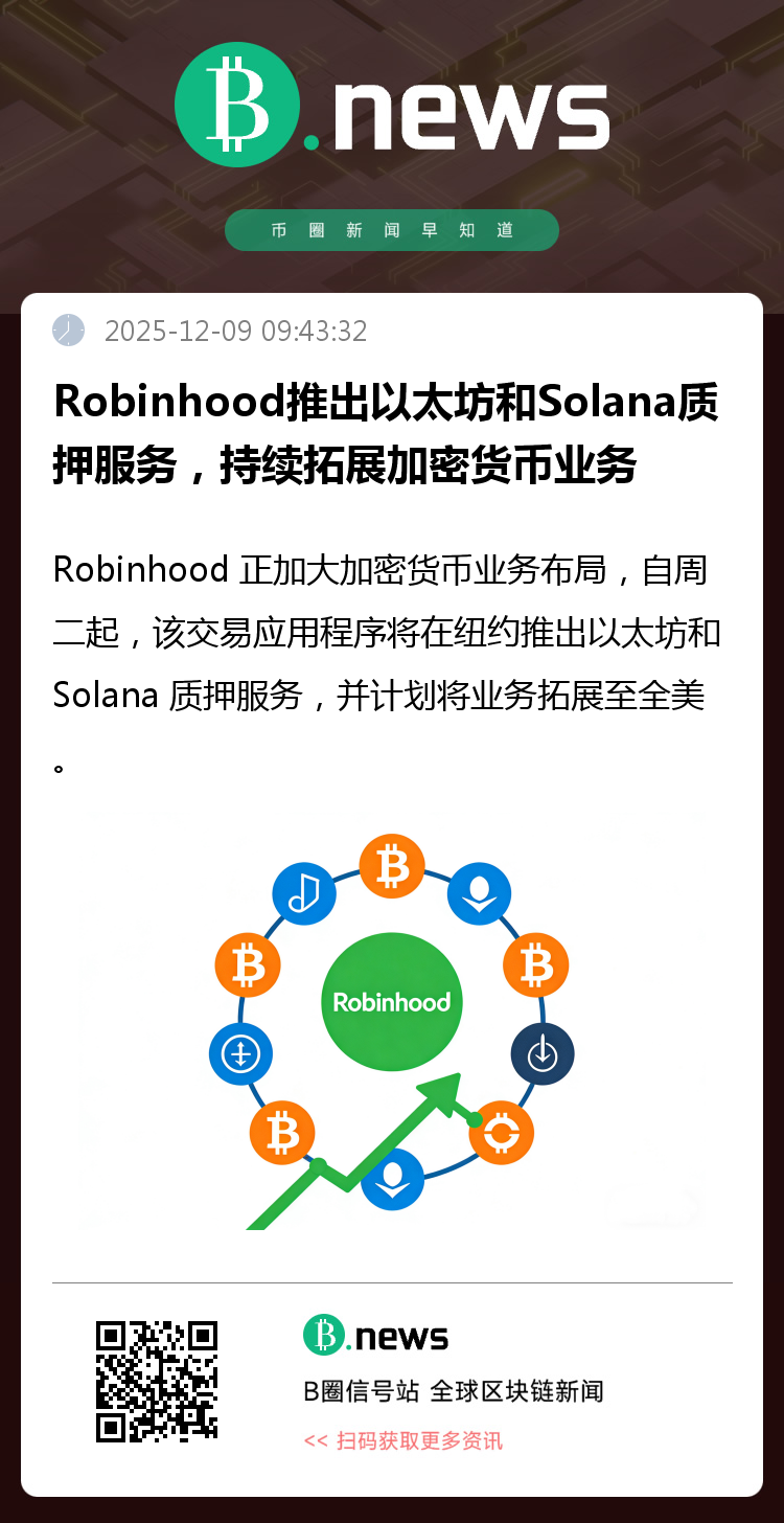 据相关报道,Robinhood 正加大加密货币业务布局。据该公司称,自周二起,该交易应用程序将在纽约推出以太坊和 Solana 质押服务,并计划将业务拓展至全美。Robinhood 还宣布进军全球加密货币市场。在欧洲,它将为多种加密货币添加永续期货合约,同时还将进入印度尼西亚市场,因为该公司已同意收购该国的一家经纪公司和加密货币平台。