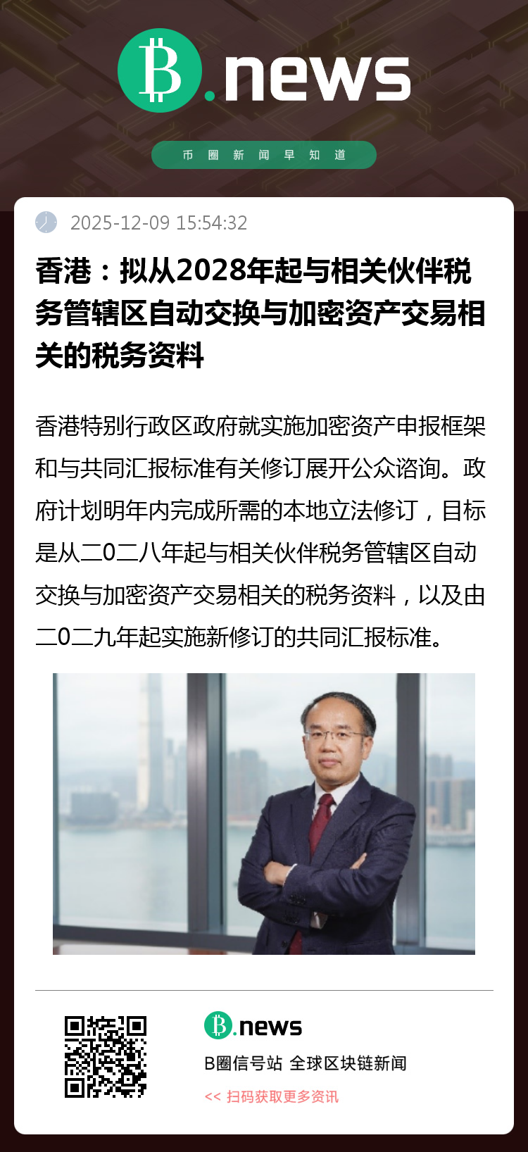 香港特别行政区政府就实施加密资产申报框架和与共同汇报标准有关修订展开公众谘询。财经事务及库务局局长许正宇表示,为展现香港致力推动国际税务合作及打击跨境逃税的决心,履行国际义务,我们会修订《税务条例》(第112章)(《条例》)以实施申报框架及新修订的共同汇报标准。这举措亦对维持香港作为国际金融和商业中心的声誉至为重要。政府计划明年内完成所需的本地立法修订,目标是从二0二八年起与相关伙伴税务管辖区自动交换与加密资产交易相关的税务资料,以及由二0二九年起实施新修订的共同汇报标准。香港会在互惠原则下与合适伙伴自动交换税务资料,当中,伙伴须符合与保障资料保密和安全相关的标准。