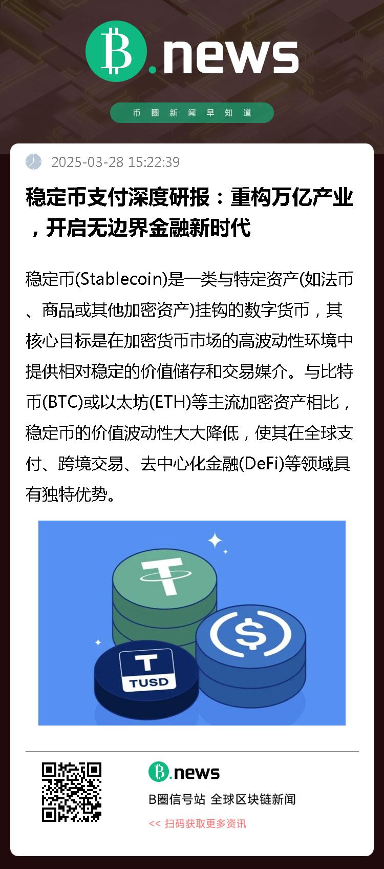 随着区块链技术的成熟和稳定币的普及,它们正在重塑全球支付产业,为个人和企业提供更快、更便宜、更公平的支付方式。未来,稳定币有望成为全球支付体系的重要组成部分,推动数字金融的进一步发展。