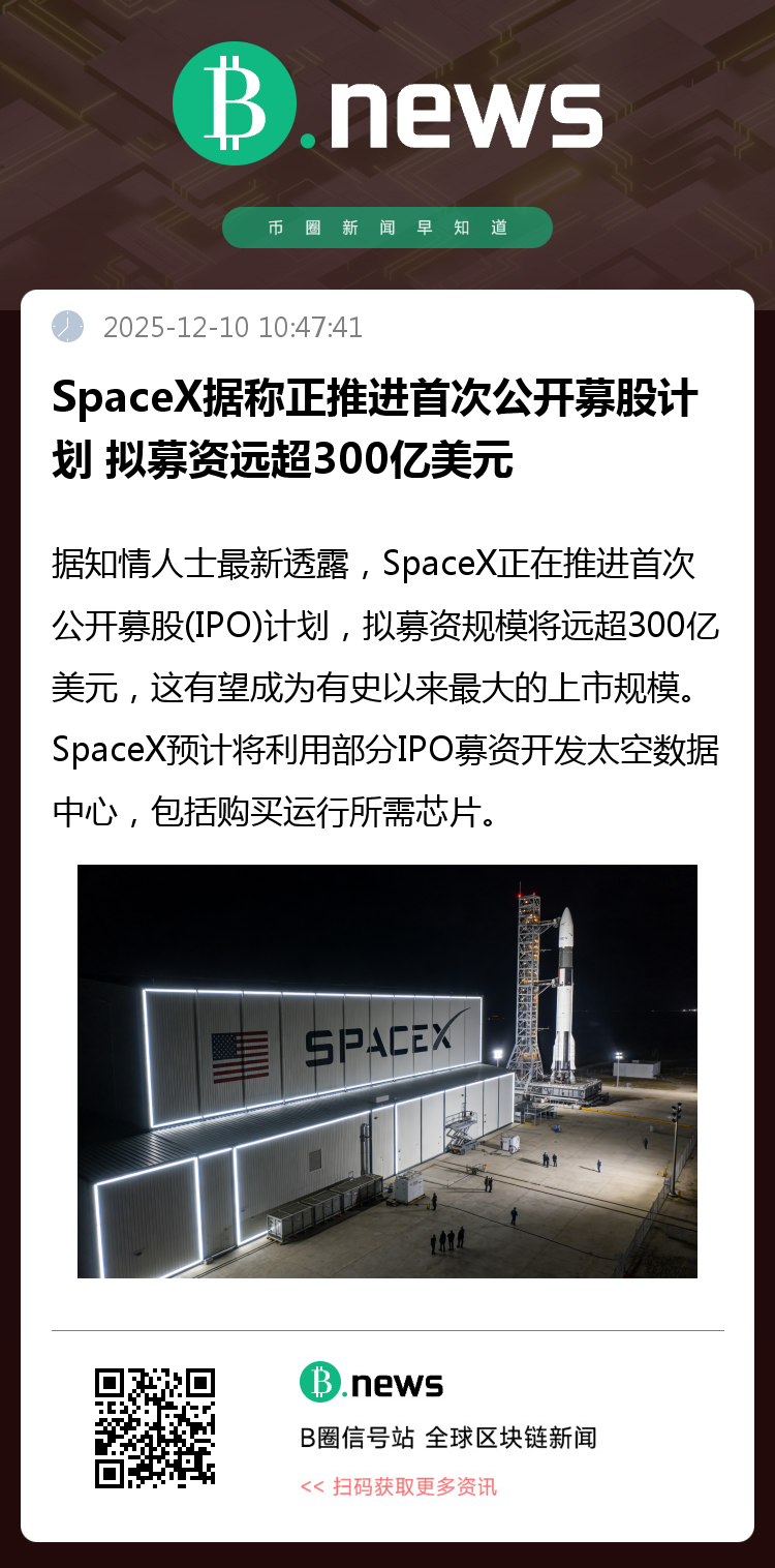 据知情人士最新透露,SpaceX正在推进首次公开募股(IPO)计划,拟募资规模将远超300亿美元,这有望成为有史以来最大的上市规模。SpaceX预计将利用部分IPO募资开发太空数据中心,包括购买运行所需芯片。