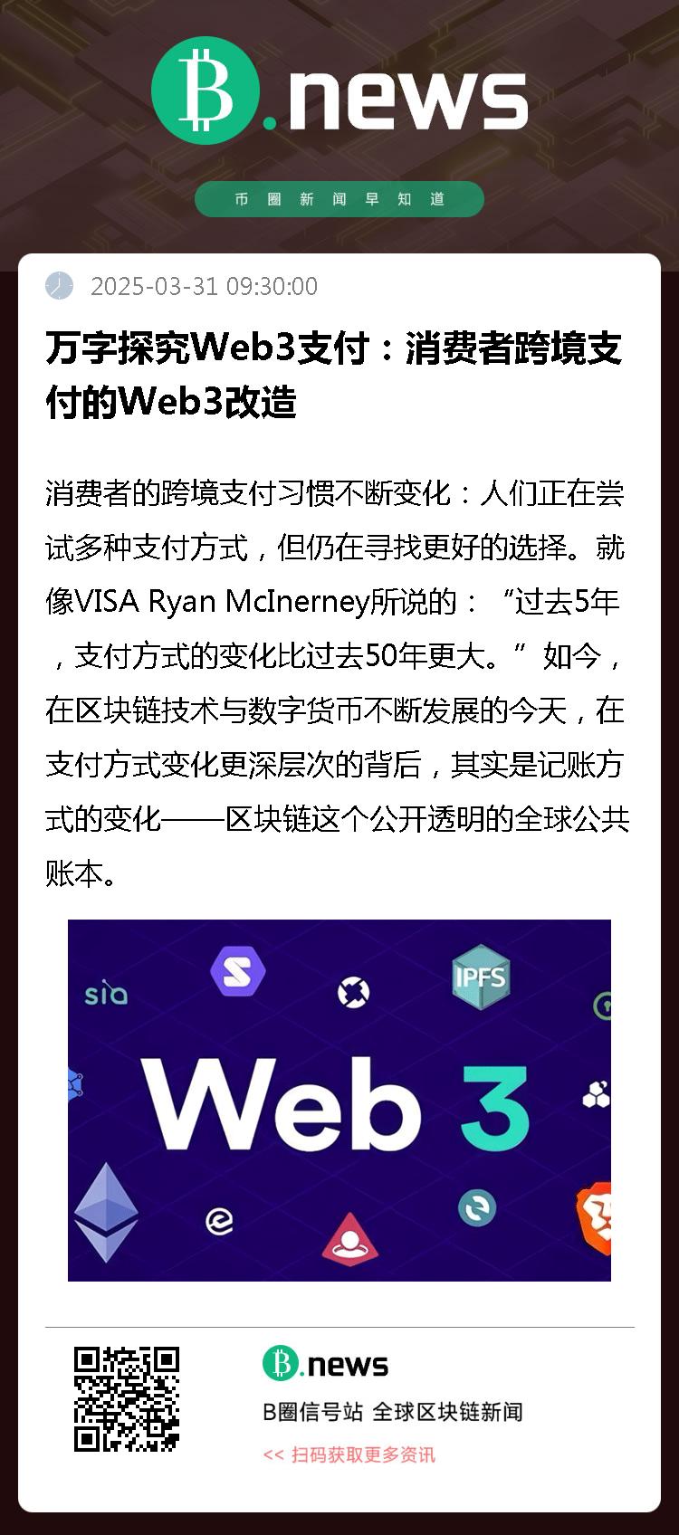 这一影响深远的变革不会一蹴而就,而是正在不断演进,目前也促成了基于区块链和数字货币的Web3支付,这一新支付方式正在不断深入现实社会的方方面面。